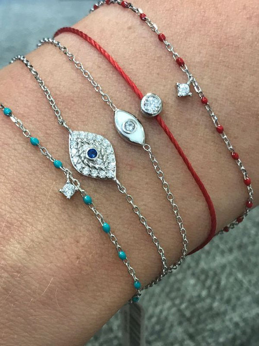 BG-10/ST - Bead and Chain Bracelet with Hanging CZ