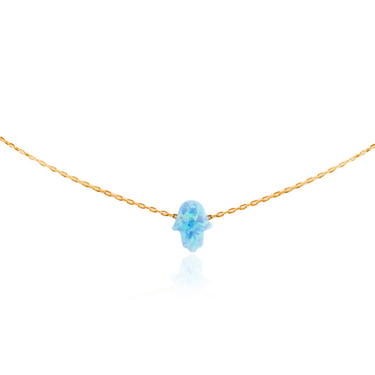 BK-510/SB - Chain Bracelet with a Blue Opal Hamsa Charm