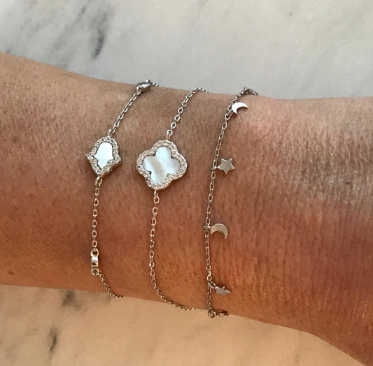 BG-5/S - Sterling Silver Chain Bracelet with Mother of Pearl Clover Charm